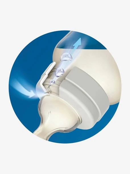- Valve AirFree(TM) (vendue séparément sur ce site) : permet de garder la tétine pleine de lait et non d’air, même lorsque le biberon est à l’horizontale afin de faciliter l’alimentation de bébé en position assise